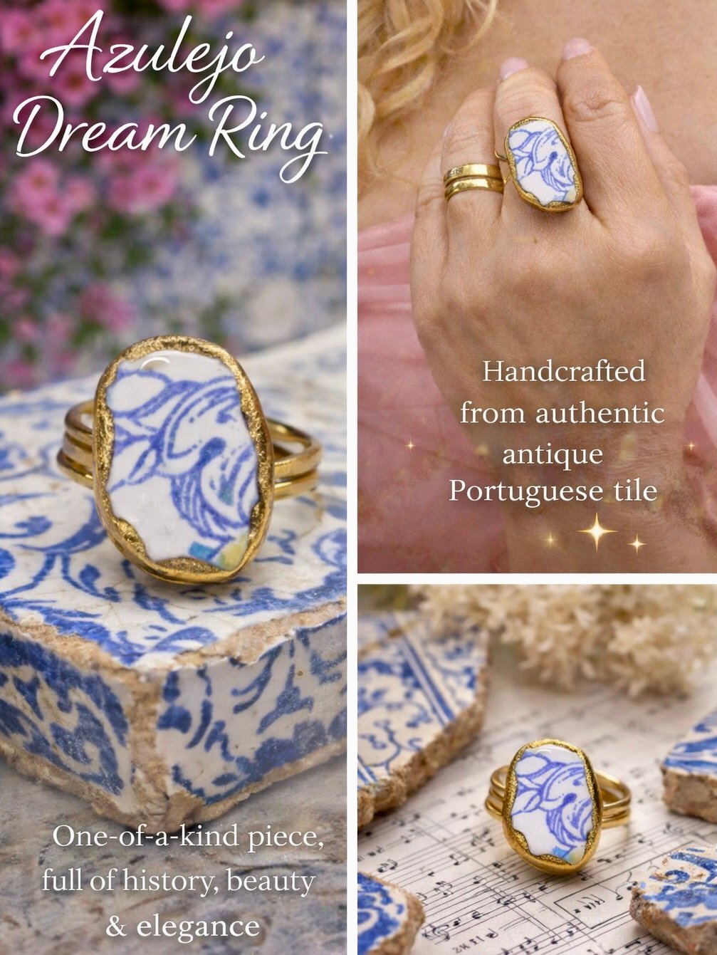 This is a ring made out of authentic Portuguese azulejos.